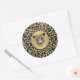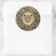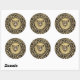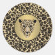 Um adesivo redondo com uma imagem de uma cabeça onça de ouro e jaguar com um diamante sobre ouro escovado com uma borda preta sobre um fundo de impressão leopardo. Consulte correspondência de postagem. Veja toda a coleção de adesivos Gemstones & Medallions na seção CARDS, POSTCARDS & STICKERS.