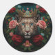 Adesivo Redondo Jaguar with Crown in Flowers Painting