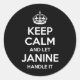 Adesivo Redondo Janine Mantenha Calma Nome Personalizado Engraçado
