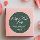 Apresentamos nosso "Adesivo Redondo Clássico Verde Esmeralda para Jantar de Ensaios de Mais Um Dia". Esses adesivos requintados adicionam um toque de sofisticação ao seu jantar de ensaios, apresentando um design rico em verde esmeralda. Perfeitos para selar convites, enfeitar sacolas de lembranças ou personalizar a decoração, cada adesivo celebra a expectativa do seu dia de casamento. A cor marcante e a mensagem "Mais Um Dia" criam uma adição memorável e elegante às suas celebrações pré-casamento, estabelecendo um tom sofisticado e vibrante para o seu evento especial.