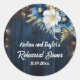 Adesivo Redondo Jantar de Rehearsal Floral Branco em Madeira Azul