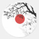 Adesivo Redondo Japanese Red Sun & Brush Tree Art