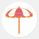 Um adesivo branco com ilustração simples de um guarda-chuva de praia cor-de-rosa e branca. Mande envelopes ou presentes com alguma diversão no verão!