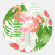 Design de padrão aquoso com flores e aves flamingos, monstera e palmeiras.