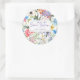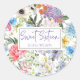 Doce Sessenta palhetas redondas clássicas de jardim florístico com flores selvagens bonito em folhas roxas, lavandas, verdes e muito mais, com uma tipografia com escrita escovada num fundo elegante e editável.