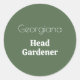 Estes autocolantes do jardim exibem as palavras "Jardineiro da Cabeça" na tipografia moderna na moda. Os adesivos verdes e brancos podem ser personalizados com um nome, fazer presente de novidade ideal para os amantes do jardim.