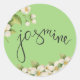 Um rótulo redondo clássico que mostra ilustração de jasmim com folhas verdes, floração e inscrição. Ideal para os recipientes de especiarias da cozinha ou decoração.