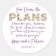Pois eu conheço os planos que tenho para você, declara o LORD, planeja prosperar e não prejudicá-lo, planeja dar-lhe esperança e um futuro. - Jeremiah 29:11 é uma poderosa Bíblia Inspiracional Verse Floral Letters e Design de texto Roxo. Um presente de excelente para famílias e amigos lembrarem-lhes que Deus sempre planejou para nós o excelente.