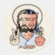 Imagem de Jesus e Satã compartilhando a mesma cabeça, com um sinal de paz e um dedo médio, respectivamente. E, um halo que é um cobra do outro lado. T-shirts e novidade.
