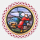 O ornamento da árvore Jesse para o dia 17 é uma baleia. Este vidro medieval manchado tem o símbolo do 18º dia do advento. Uma bela e colorida representação da história de Jonah e da baleia. Decorado com um círculo trançado no estilo Celta de vermelho e branco com fundo dourado. Faça seus próprios ornamentos com adesivos Zazzle.