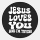 Adesivo Redondo Jesus ama você e eu estou tentando