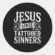 Adesivo Redondo Jesus Loves Tattooed Sinners Christian Faith Inked