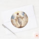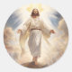 O adesivo redondo é mostrado com um impressão de arte de Jesus em sua glória. Vinheta grande mostrada. Personalize este item ou comprar como está. Imagem licenciada
