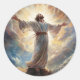 O adesivo redondo é mostrado com um impressão de arte de Jesus em sua glória. Um adesivo pequeno mostrado. Personalize este item ou comprar como está. Imagem licenciada