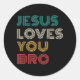 Adesivo Redondo Jesus Te Ama Irmão, Faith Cristã Engraçado Retro