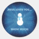 Adesivo Redondo Jesus Te Ama Muito Neve! Christian Snowman Blue