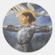 Imagem icônica de Jeanne d'Arc em batalha, vestindo armadura e segurando espada e faixa.