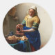 Adesivo Redondo Johannes Vermeer. Milkmaid. Vintage belas artes