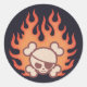 Crânio de pirata de desenho e bósforos em chamas quentes. Cor, t-shirts, suores, cartas, presentes.