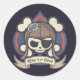 Crânio e bósforos de criança com capacete de couro, manchas e gogles, em uma pá de cartas de jogar, com faixa lendo "Rei da Estrada" em letras góticas. Camisas, suores, cartas, presentes.