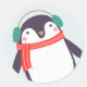 Etiquetas de férias bonitas com ilustração de um pinguim vestindo um cachecol vermelho e protetores auriculares verdes.