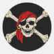 Adesivo Redondo Jolly Roger Pirate Skull Bones Red Bandanna