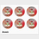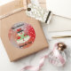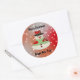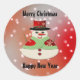 Este adesivo redondo clássico apresenta sonhos alegres de neve de boneco de neve desenhados por deluxephotos.