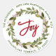 Este adesivo festivo de endereço de retorno apresenta a palavra "Joy" em escrito vermelho no meio de uma coroa de Natal, Holly e berry, e seu nome e endereço ao redor dela. Linda expressão para seus envelopes e pacotes para o Natal!