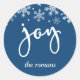 Moderno e divertido, este adesivo apresenta simples flocos de neve e com letra de "alegria". Adicione seu nome no formulário de modelo. Faz um selo de envelope ou etiqueta de presente.