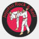 Este adesivo é decorado com as palavras "Jujutsu Rock & Roll" cercando dois homens em combate.