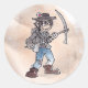 Um design de personagem de sugestão do jogo Nuggets Dourados do Brown Bag Game. Esse cara de desenho animado tem um cartão de jogo preso em seu chapéu, e um machado picante na mão, pronto para roubar ouro.
