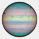 Duas das luas atravessavam o rosto de Júpiter ao mesmo tempo que as três sombras. Júpiter aparece em cores pastéis nessa foto porque a observação foi feita em luz quase infravermelha. Os astrônomos combinaram imagens tiradas em três comprimentos de onda quase infravermelhos para fazer essa imagem colorida. A foto mostra a luz do sol refletida nas nuvens de Júpiter. No infravermelho próximo, o gás metano na atmosfera de Júpiter limita a penetração da luz solar, o que faz com que as nuvens apareçam em diferentes cores dependendo de sua altitude. As cores amarelas indicam nuvens altas; cores vermelhas menores; e cores azuis até nuvens mais baixas na atmosfera de Júpiter. A cor verde perto dos polos vem de uma névoa fina muito alta na atmosfera. A cor azul de Ganymede vem da absorção do gelo da água em sua superfície em comprimentos de onda mais longos. A cor branca de Io é da luz refletida de compostos de enxofre brilhantes na superfície do satélite.