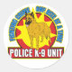 O cão Malinois belga da Polícia do Reino Unido fica no meio de um logotipo vermelho, azul e amarelo com o Crime de Combate, Uma Mordida de cada Vez ao redor do mundo e a Unidade K-9 da Polícia do outro lado do fundo! Excelente de presentes da unidade K9, muito legal, para policiais polícias e apoiadores!