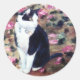 De uma pintura original a óleo de Brenda Thour de um gato preto e branco cercado por flores rosa. Copyright de Brenda Thour 2007.