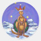 Parada Animal Canguru Festivo e Presentes e Acessórios para Bebê Roo apresentam nossa adorável Mama Kangaroo e seu quarto de bebê com Papai Noel vermelho. Da parte de trás, a mamãe está vestindo uma enorme coroa sagrada e o bebê ronco espreita. Este canguru bonitinho está em uma paisagem nevada com um céu noturno estrelado atrás e uma bela borda ondulada. Deixe este adorável salto marsupial festivo em suas casas nesta temporada de festas.