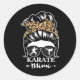 Adesivo Redondo Karate Mimi Messy Bun Hair Engraçado Karate Fighte