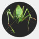 Este adesivo apresenta um alegre e verde katydid. Katídids são insetos de tamanho médio a grande. São geralmente verdes, às vezes com marcas marrons, camuflados para se misturarem com as folhas que se alimentam. Suas longas antenas os distinguem dos gafanhotos. Vista de perto, eles parecem ser aliens do espaço sideral!