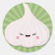 Adesivo Redondo Kawaii Garlic Bulb em Starburst Verde