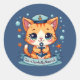 Adesivo Redondo Kawaii Náutico Cat Navegando Anchor Pun