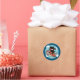 Adesivo Redondo Kawaii Ninja Cat Andando um Dragão Vermelho