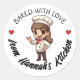 Adesivo Redondo Kawaii, padeiro de cabelo castanho longo, cozido c