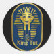 Imagem estilizada do rei Tut com seu nome em hieroglifos.