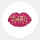 Adesivo Redondo Kiss Red Lábios Dourado Glitter XOXO