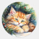 Adesivo Redondo Kitten de Natal, aprisionando debaixo da árvore