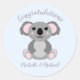 Adesivo Redondo Koala Bear Chá de fraldas Blue Boy