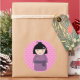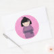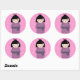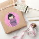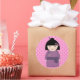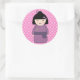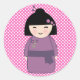 Boneca Kokeshi japonesa desenhada digitalmente. Púrpuras e pinks. Flores no cabelo e no quimono.