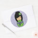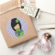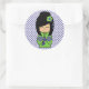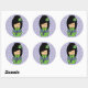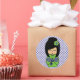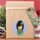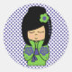 Boneca Kokeshi japonesa desenhada digitalmente. Verde limão e quimono acentuado roxo.