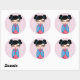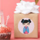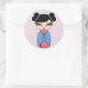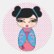 Boneca Kokeshi japonesa desenhada digitalmente. Quimono rosa e azul.