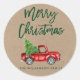 Roteiro Kraft Brush Watercolor Red Vintage Truck com Árvore de Natal - Nome da Família de Feliz Natal Envelope Seal