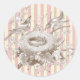 Adesivo Redondo La Petite Famille em fundo rosa e creme